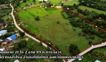ขายที่ดินเปล่า อ.โนนไทย จ.นครราชสีมา – 21 ไร่ 2 งาน 89.6 ตร.ว. – ติดถนน น้ำไฟเข้าถึง ใกล้มอเตอร์เวย์ – ราคาไร่ละ 350,000 บาท