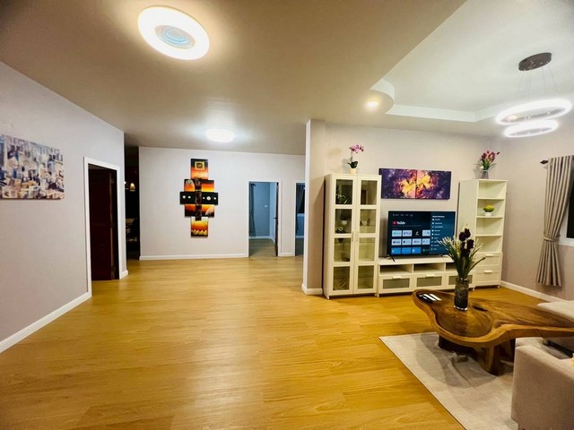 ห้องรับแขก พร้อมเฟอร์นิเจอร์ใหม่ทั้งหมด แถมฟรี ตู้ชุดโฮมเธียร์เตอร์ใหม่ของ Ikea ,โซฟาใหม่,Smart TV 58”,โต๊ะรับแขกไม้แท้จากเชียงใหม่,แจกันดอกไม้,รูปภาพแขวนผนัง