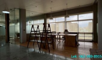 เพดานสูง โปร่ง งานเหล็ก งานไม้ และไฟดีไซน์เฉพาะตัว เหมาะกับบริษัทที่ให้ความสำคัญกับภาพลักษณ์และบรรยากาศการทำงาน